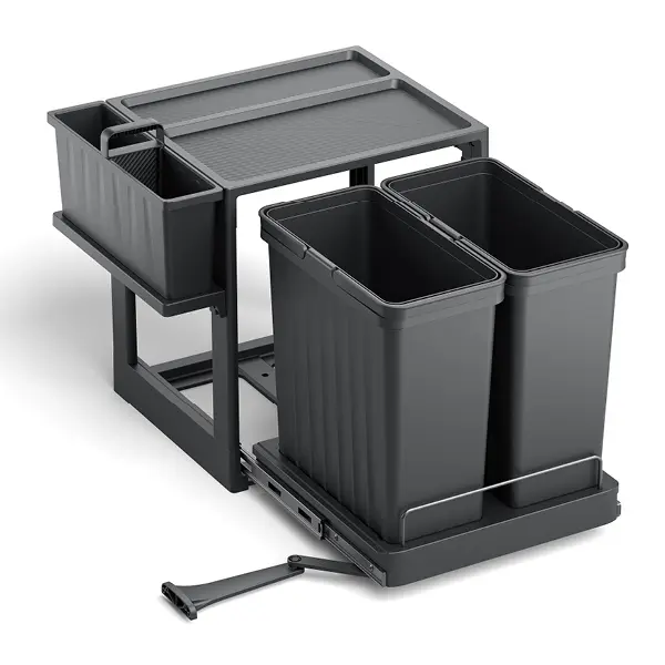 פח אשפה מחולק נשלף עם ארגונית נשלפת 52L, נפתח עם הדלת