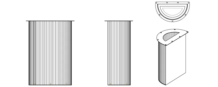 רגל חצי עגולה מחורצת, קוטר 46 סמ, רוחב 24 סמ גובה 71 סמ