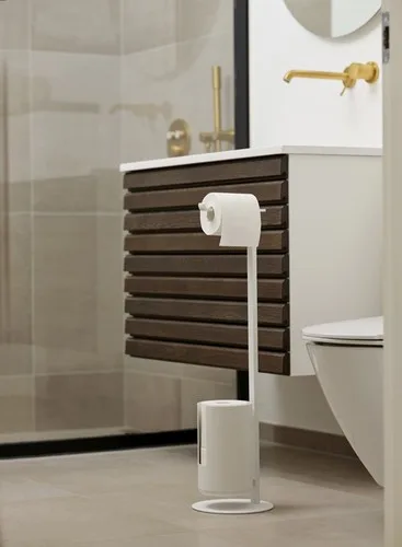 מעמד עומד לנייר טואלט + נייר רזרבי מקולקציית RIM של המותג ZONE Denmark, הוא פתרון ייחודי ומעוצב ללא צורך בקידוח בקירות. ניתן להזיז אותו בקלות לניקיון או לשנות את מיקומו לפי הצורך.