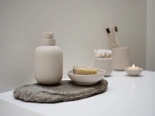 דיספנסר לסבון נוזלי לחדר הרחצה מדגם Sensu של המותג Zone Denmark, כל אחד צריך מרחב נשימה כדי להיטען באנרגיה מחדש, ואנחנו ממש יכולים ליצור אותו בעצמנו. סדרת האמבטיה בהשראה יפנית SENSU במינימליזם מסביר פנים וקווים נקיים, משמחים ומפנקים את כל החושים שלנו. הצורות הרכות והעיגולות מאפיינות את כל הקולקציה. עבור הכיור, תמצאו מתקן סבון גלילי וחמוד עם ראש משאבה קטן. הוא תואם כמובן גם לכוס מברשת השיניים הקלאסית, שכמו שאר העיצובים במגוון, עשויה מכלי חרס. המשקל של החרס והבסיס העגול שומרים על כוס מברשת השיניים שתשב בבטחה על משטח הכיור. ניתן להשתמש בה גם לטובת מברשות איפור, ציוד גילוח או פריטים יומיומיים אחרים שתרצו לשמור בהישג יד.