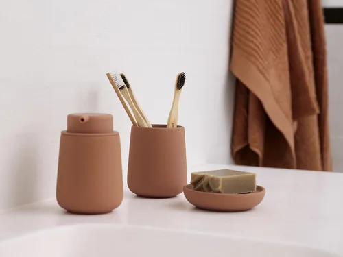 דיספנסר לסבון נוזלי מדגם NOVA ONE של המותג ZONE Denmark, עם גימור soft touch, מעוצב בסגנון פשוט ועל זמני.